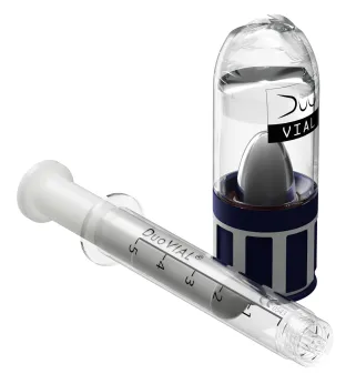 DuoVIAL - Protect, Mix & Deliver: Introducing unique and new dual-chamber packaging system, combining the advantages of a vial and ampoule into an single impermeable glass unit. Designed to protect sensitive formulations (lyophilised biologicals), which are to be combined immediately prior to use. Compact and easy to use, differentiate your product, facilitate your formulators and assist your consumers.